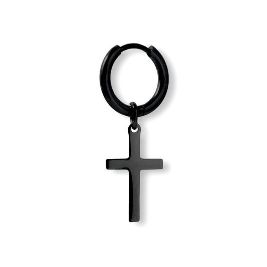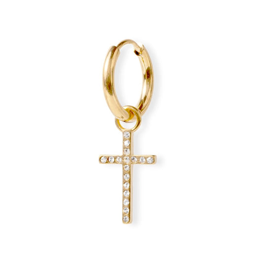 Orecchini a cerchio in acciaio chirurgico con croce e pietre