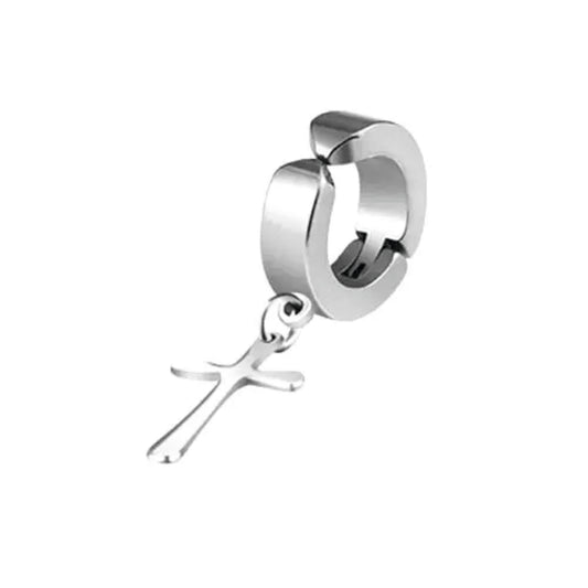 Orecchini finti a cerchio in acciaio chirurgico con croce