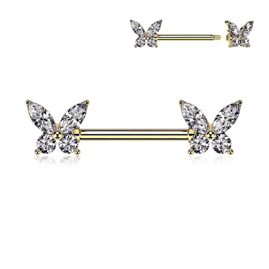 Piercing capezzolo con farfalle e pietre