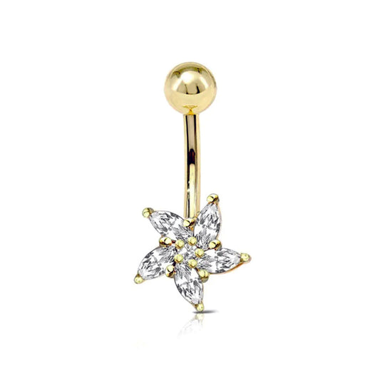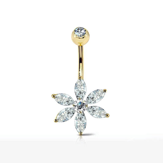Piercing ombelico con fiore pendente e cristalli
