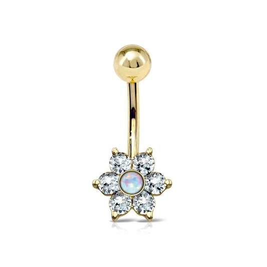 Piercing ombelico con fiore e pietra in opale