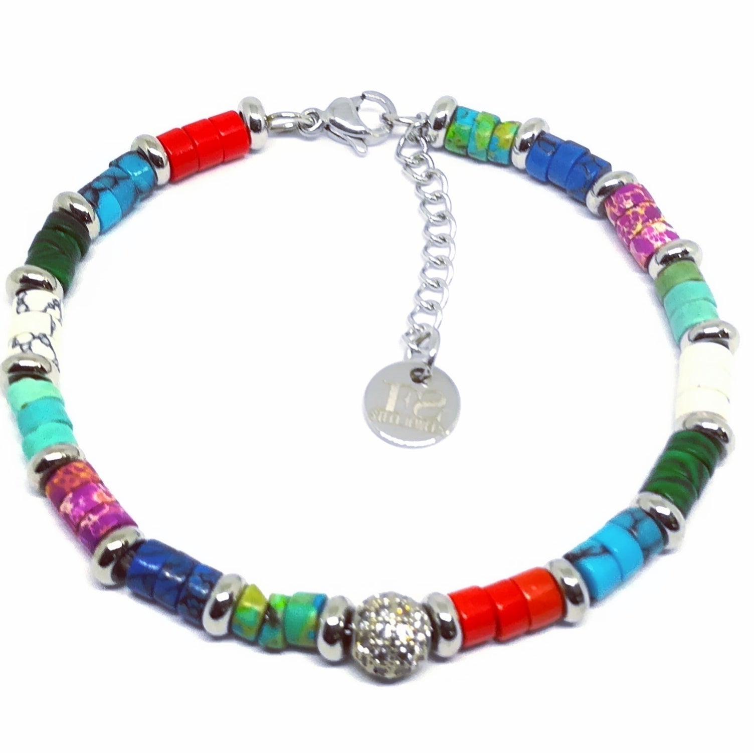 - Materiale: pietre naturali selezionate, sfera con strass in ottone e chiusure in acciaio di alta qualità;