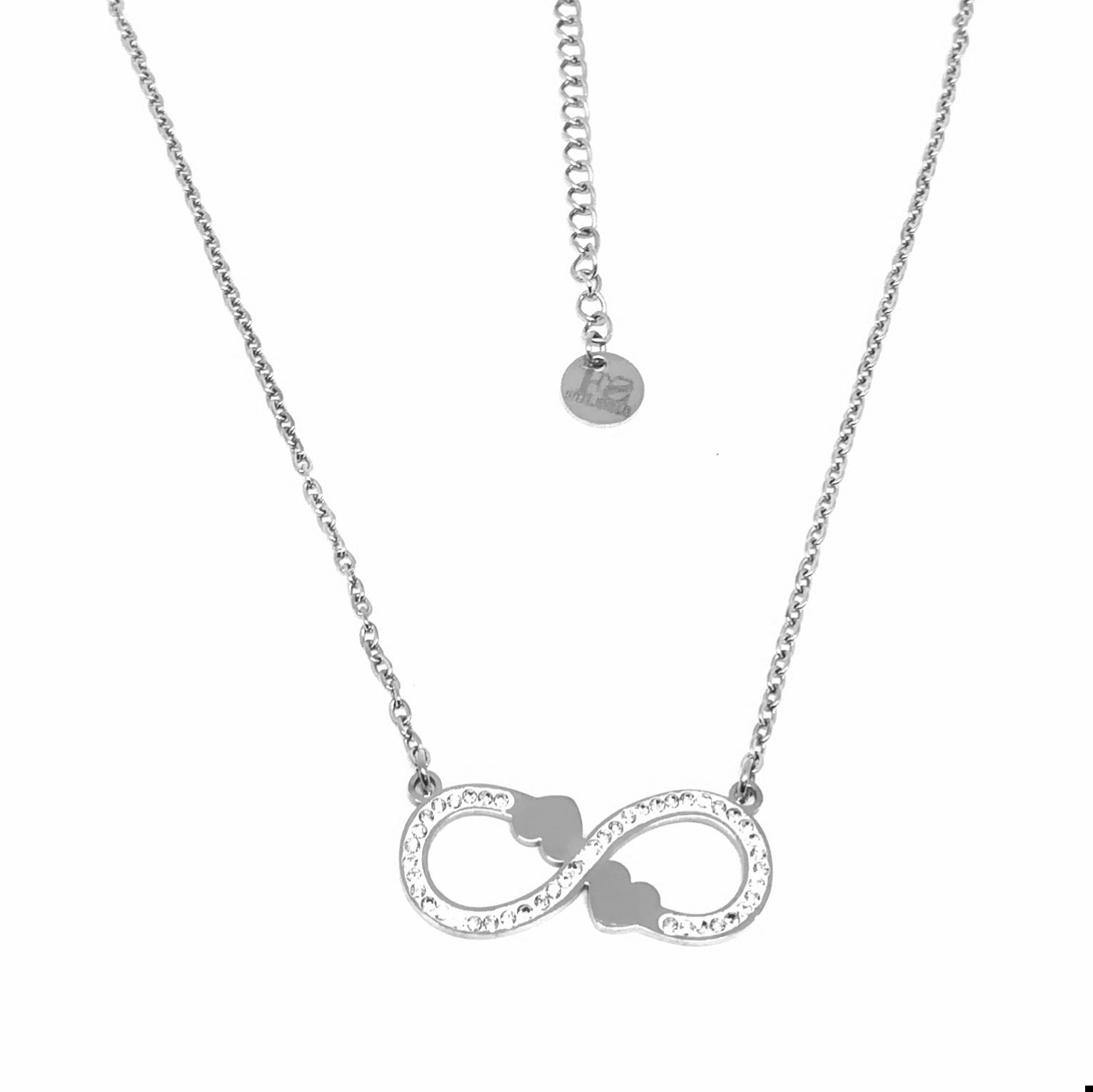 Questa collana è un pezzo unico che simboleggia l'amore infinito e la bellezza dei piccoli dettagli. Il delicato simbolo dell'infinito, impreziosito da scintillanti strass e da graziosi cuori, crea un design raffinato e luminoso. Perfetta per esprimere sentimenti profondi, questa collana aggiunge un tocco di eleganza e brillantezza a ogni occasione.