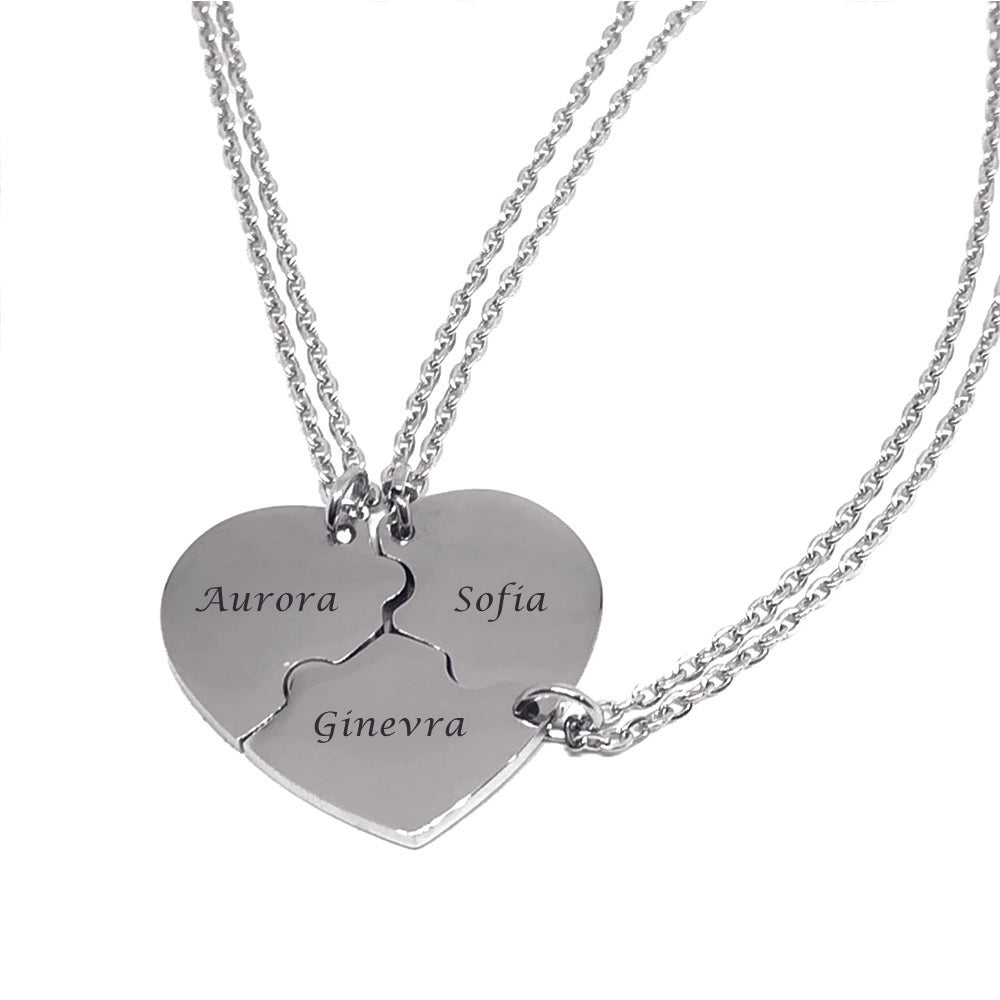 Celebra un legame speciale con questo elegante ciondolo divisibile in tre parti, perfetto per amici, sorelle o persone care. Ogni sezione può essere personalizzata con una lettera o un nome creando un gioiello unico e significativo.