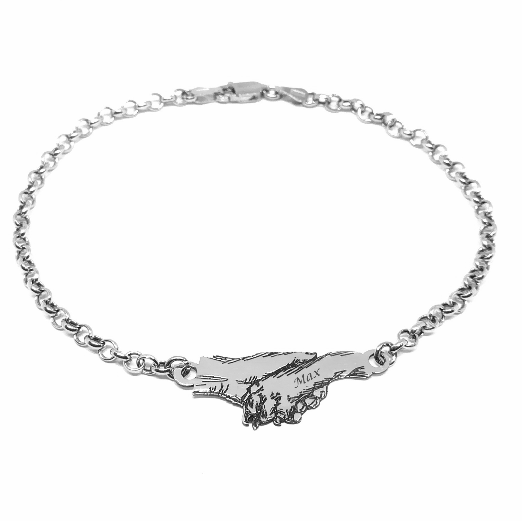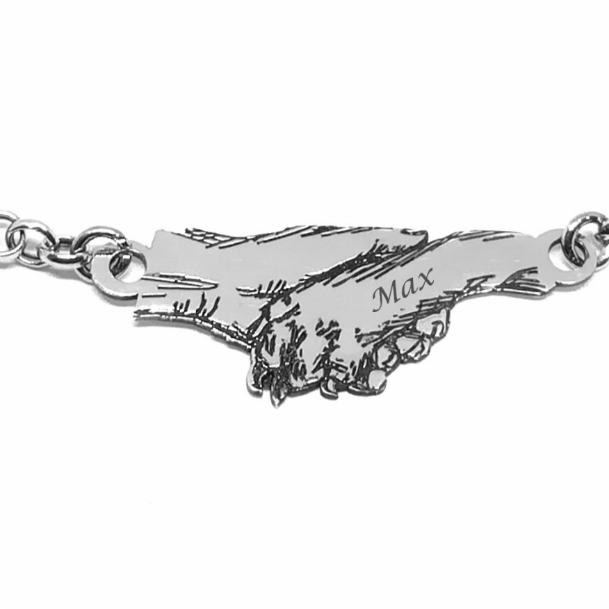 Un legame che va oltre le parole. Questo bracciale rappresenta la connessione speciale tra te e il tuo fedele amico a quattro zampe. La mano e la zampa che si incontrano simboleggiano fiducia, amore incondizionato e un'amicizia eterna. Perché un vero amico lascia un'impronta nel cuore, per sempre. Realizzato in argento 925 di altissima qualità, si arricchisce della possibilità di personalizzazione. Incidi il nome e rendi questo gioiello ancora più prezioso e personale.