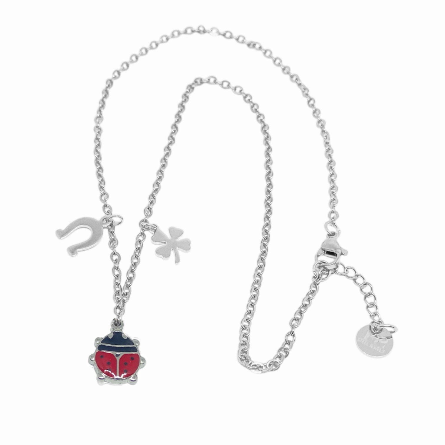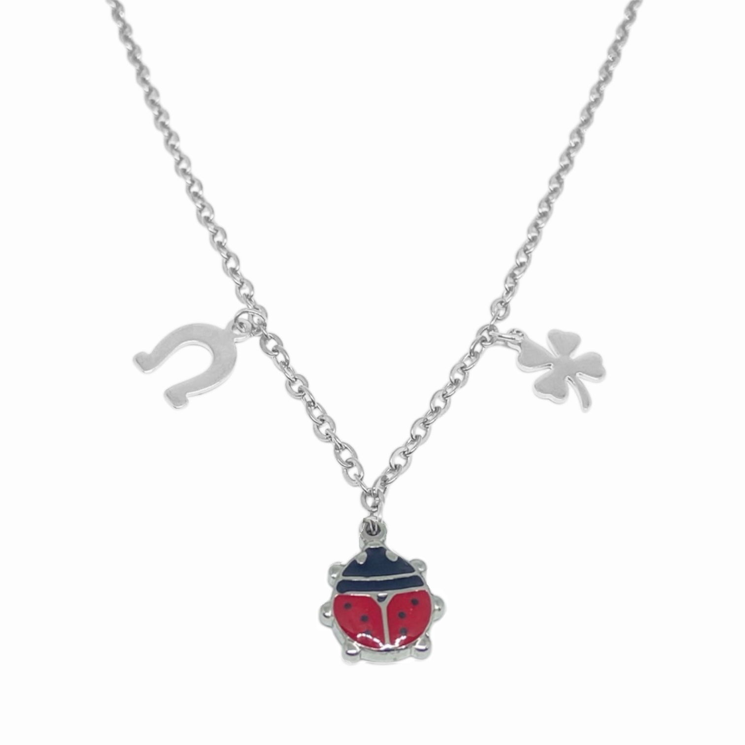 La collana portafortuna è un accessorio che non può mancare nei tuoi bijoux. Realizzato con simbolici che si ritiene portino fortuna, protezione o energia positiva a chi lo indossa.