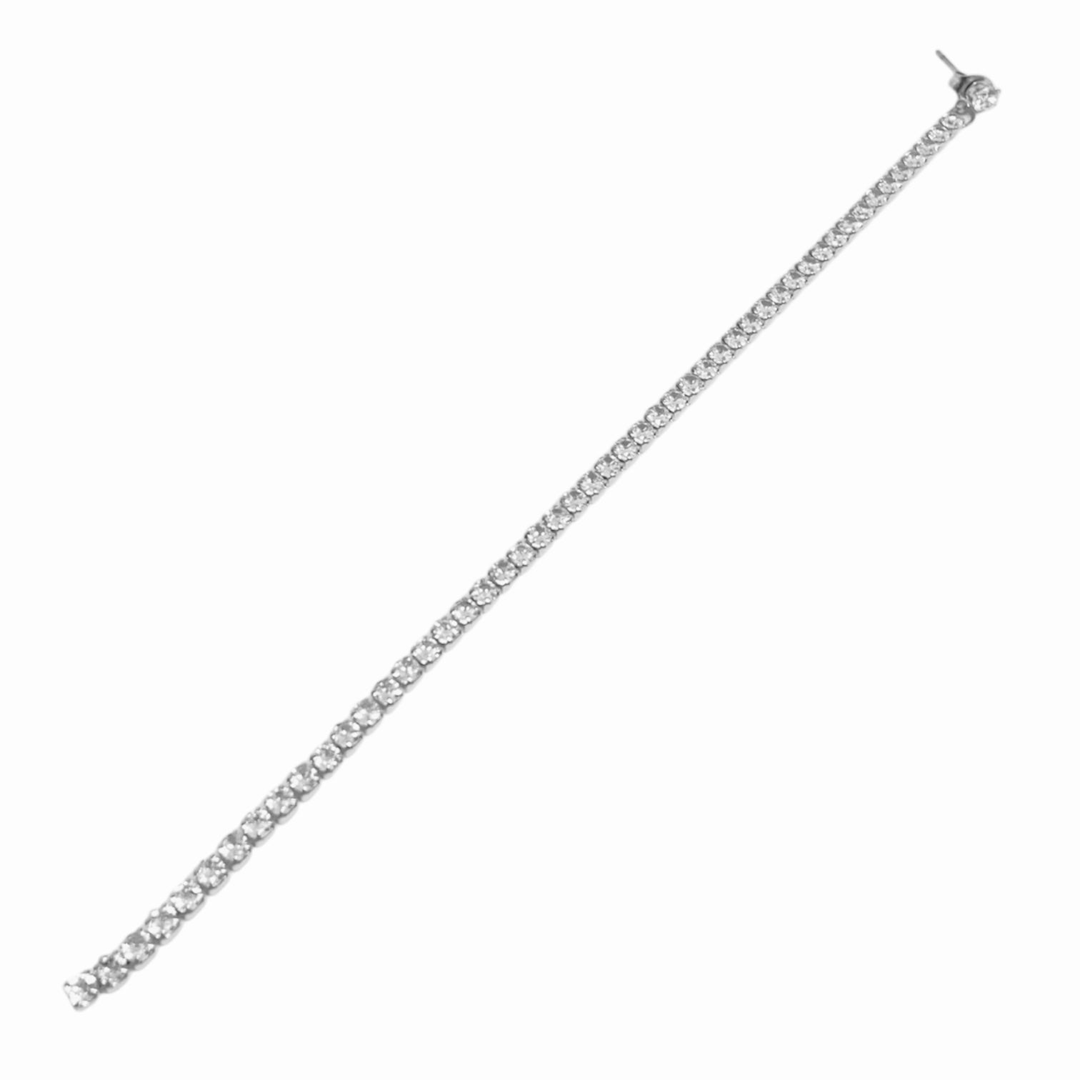 Un orecchino unico, con zirconi incastonati su base tonda in acciaio. Curato in ogni dettaglio, aggiunge un tocco di eleganza e brillantezza a ogni occasione.