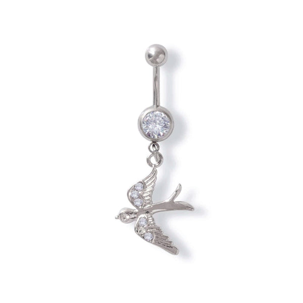 Piercing ombelico con rondine pendente e cristalli