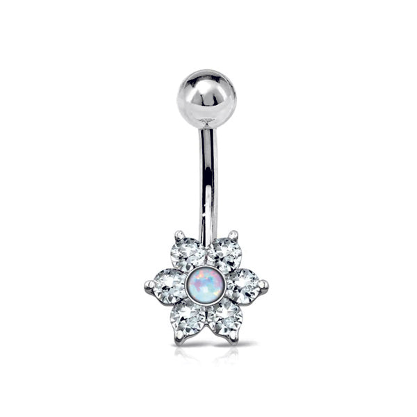 Piercing ombelico con fiore e pietra in opale