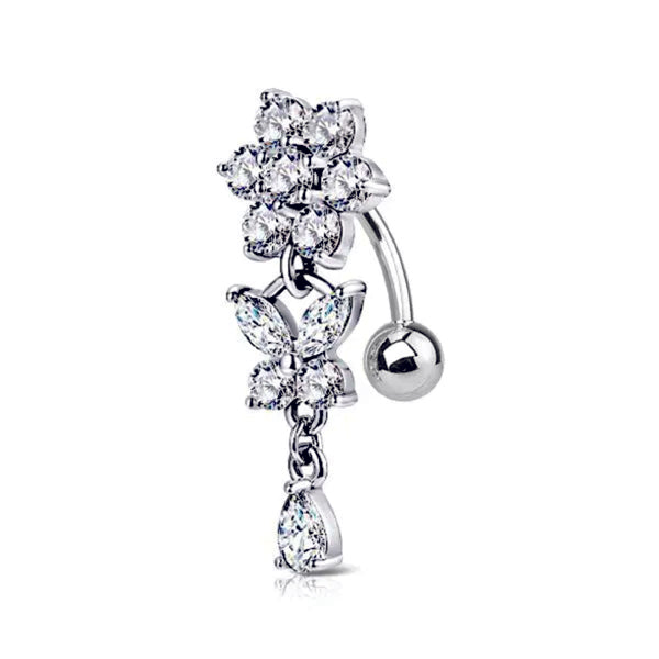 Piercing ombelico con fiore e pendenti