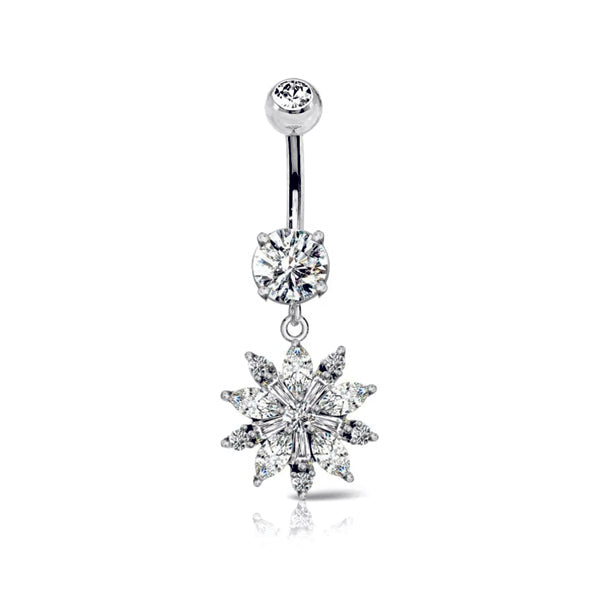 Piercing ombelico con fiore pendente e cristalli
