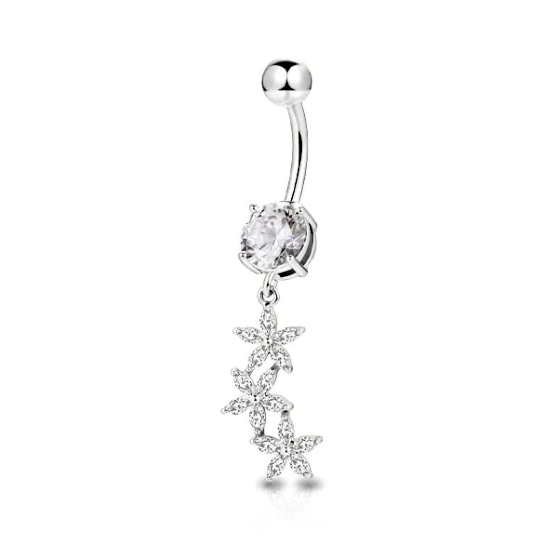 Piercing ombelico con fiori e cristalli pendenti