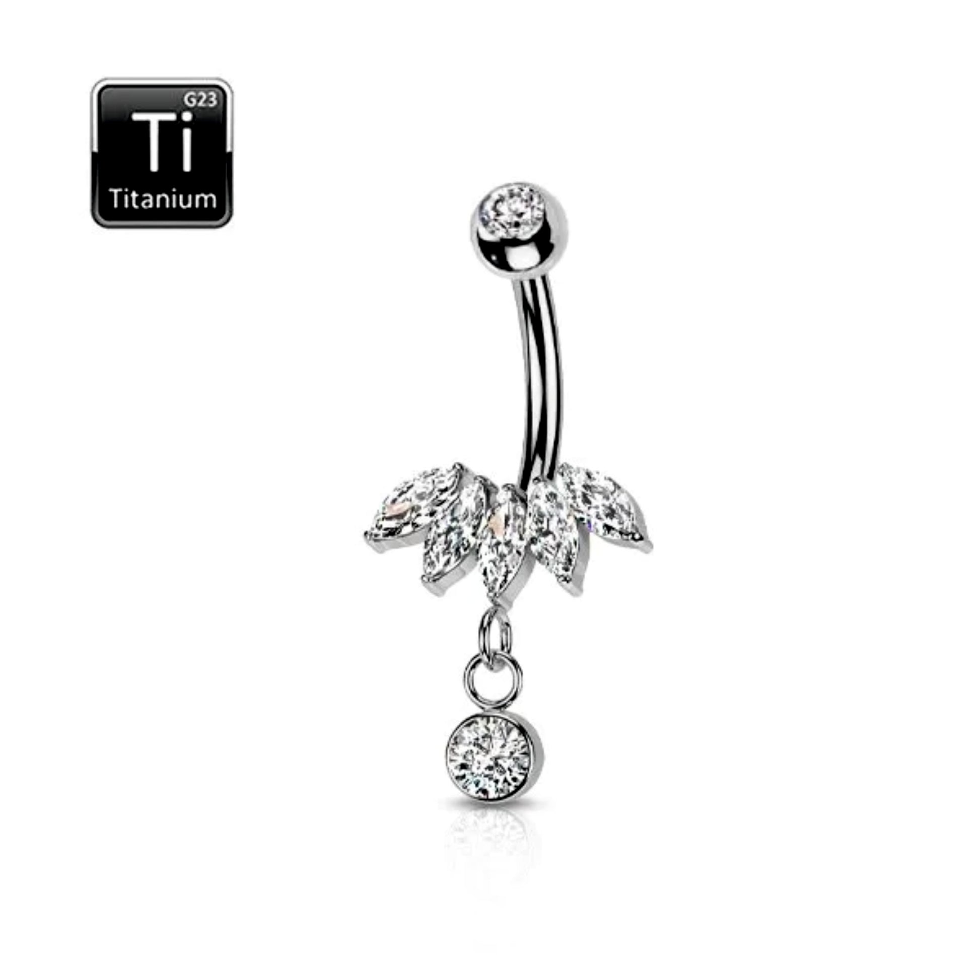 Piercing ombelico in titanio con pietre taglio marquise e pendente