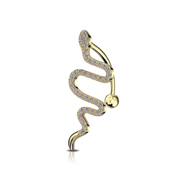 Piercing ombelico rovesciato con serpente e strass